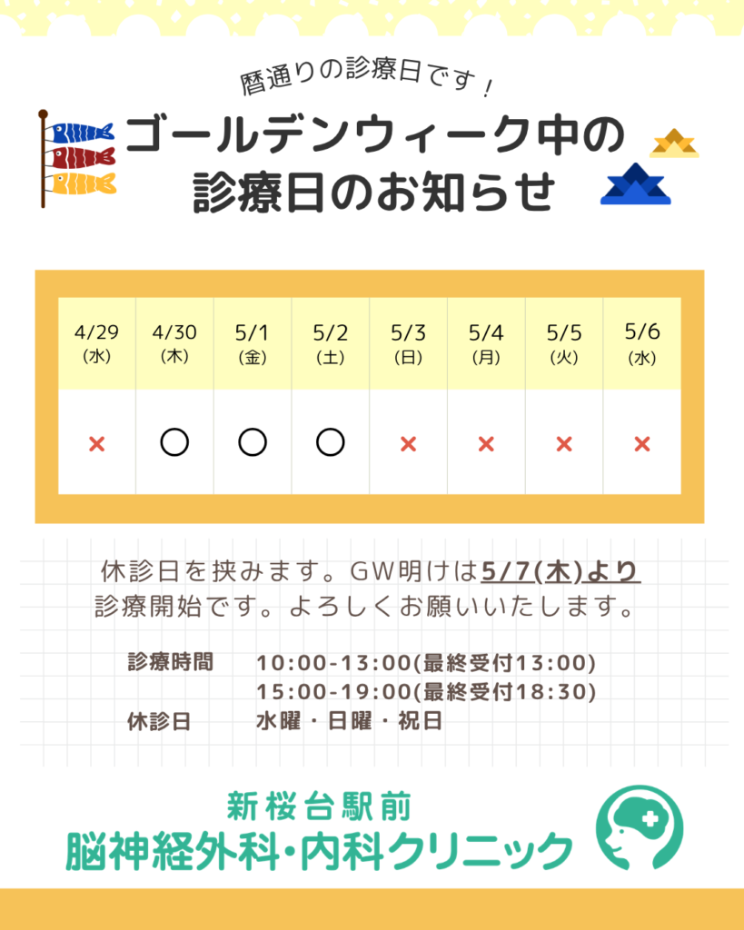 いつも新桜台駅前脳神経外科・内科クリニックをご利用いただきましてありがとうございます。